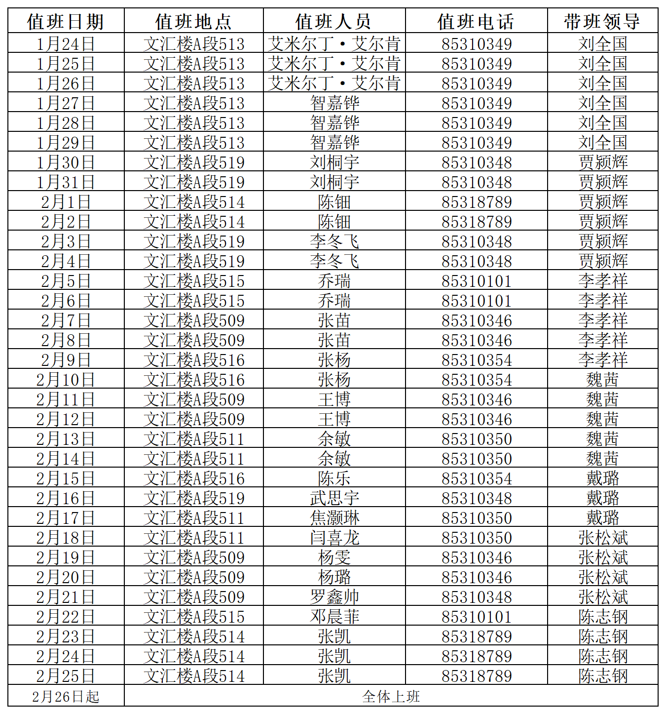 1.值班时间:早上8:30-12:00,下午2:30-5:30;