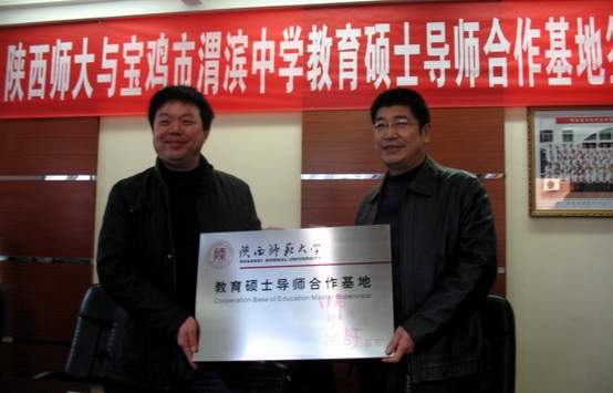 当前,如何提高全日制教育硕士实习实践教学工作水平?如何解决教育硕士合作导师聘任的问题?如何加强教育硕士导师与基础教育一线的紧密联系?等诸多问题是教育硕士培养工作的难点和我校寻求突破的工作重点。因此,本年度研究生院计划开展教育硕士指导教师培训基地建设试点工作。计划在省内及周边地区选一批一流的有代表性的中学作为我校教育硕士指导教师合作基地试点建设。宝鸡渭滨中学是第一个签约合作基地。
