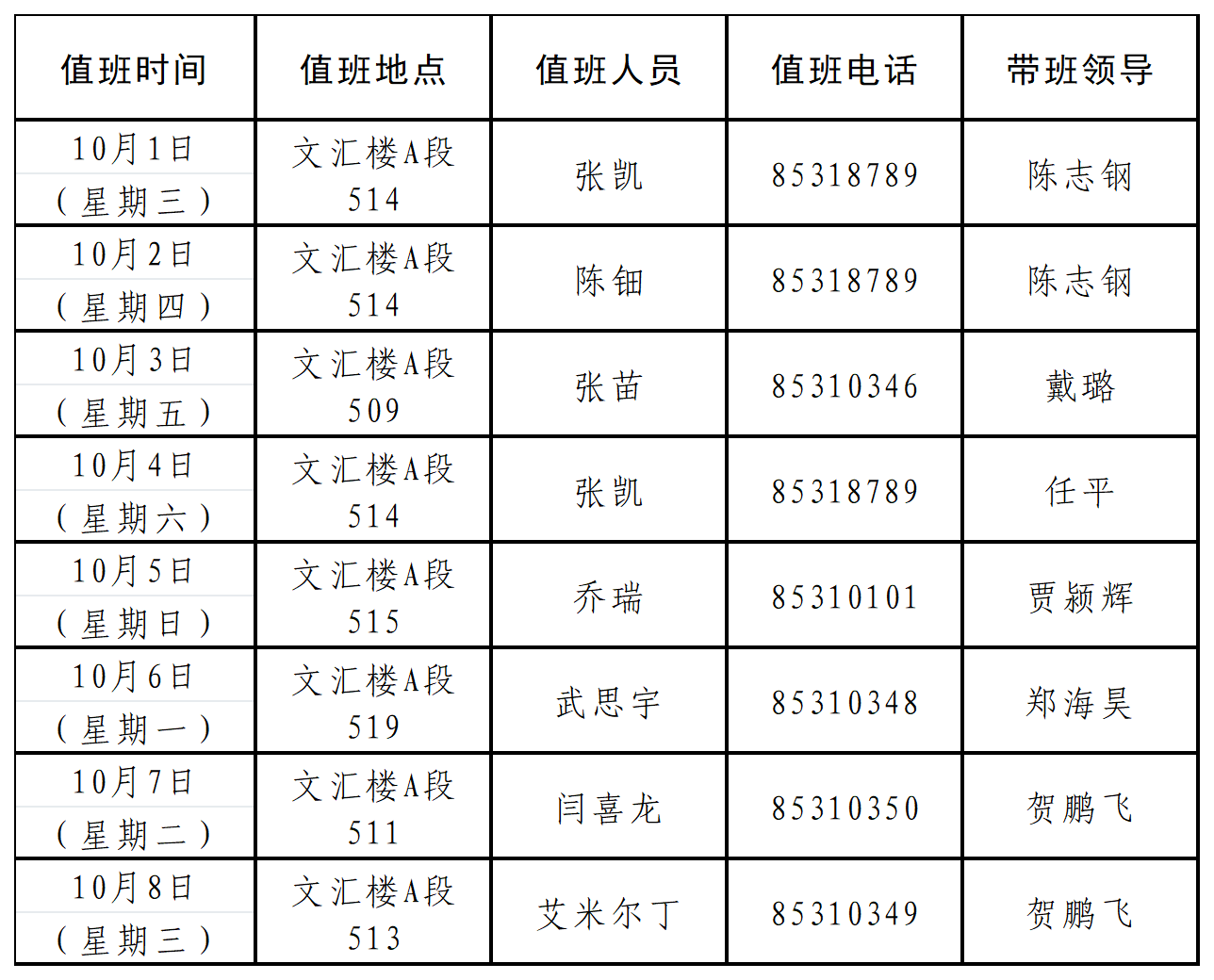 4.10月2日学校对文汇楼进行电力检修,届时可能导致固定电话无法通信,师生可前往值班办公室咨询或办理相关业务。